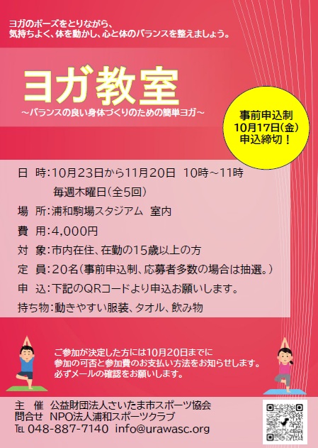 【参加者募集】ヨガ教室(浦和駒場スタジアム)の開催について
