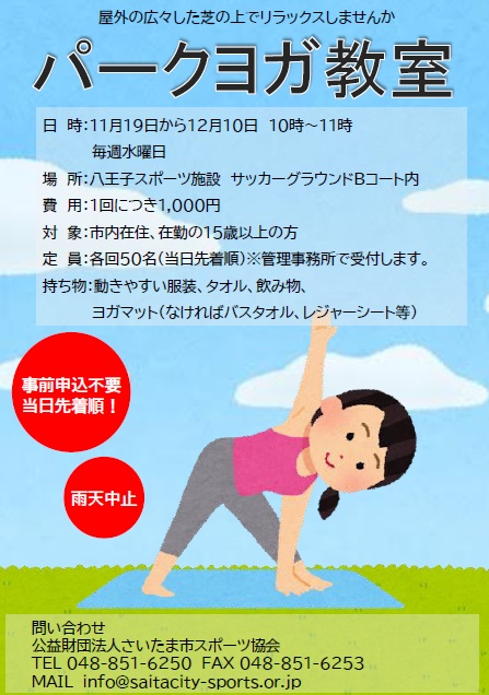 【参加者募集】パークヨガ教室(八王子スポーツ施設)の開催について