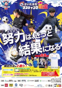 | 【お知らせ】 | 「第3回さいたま市リフティング検定」を開催します! 年齢やサッカー経験の有無は問わず、誰でも受検できます!是非ご受検ください! 今回は①オフライン(会場にて審査員の前で受検)、②オンライン(成功動画を撮影し、送信)同時に申込受付を開始します。(申込先はこちら) 受検者や合格者には豪華プレゼントも用意しています! トップページ右にあるバナーからも申込が可能です。 |